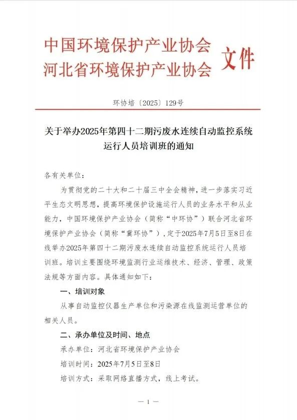 • 2025-06-12關于舉辦2025年第四十二期污廢水連續自動監控系統運行人員培訓班的通知